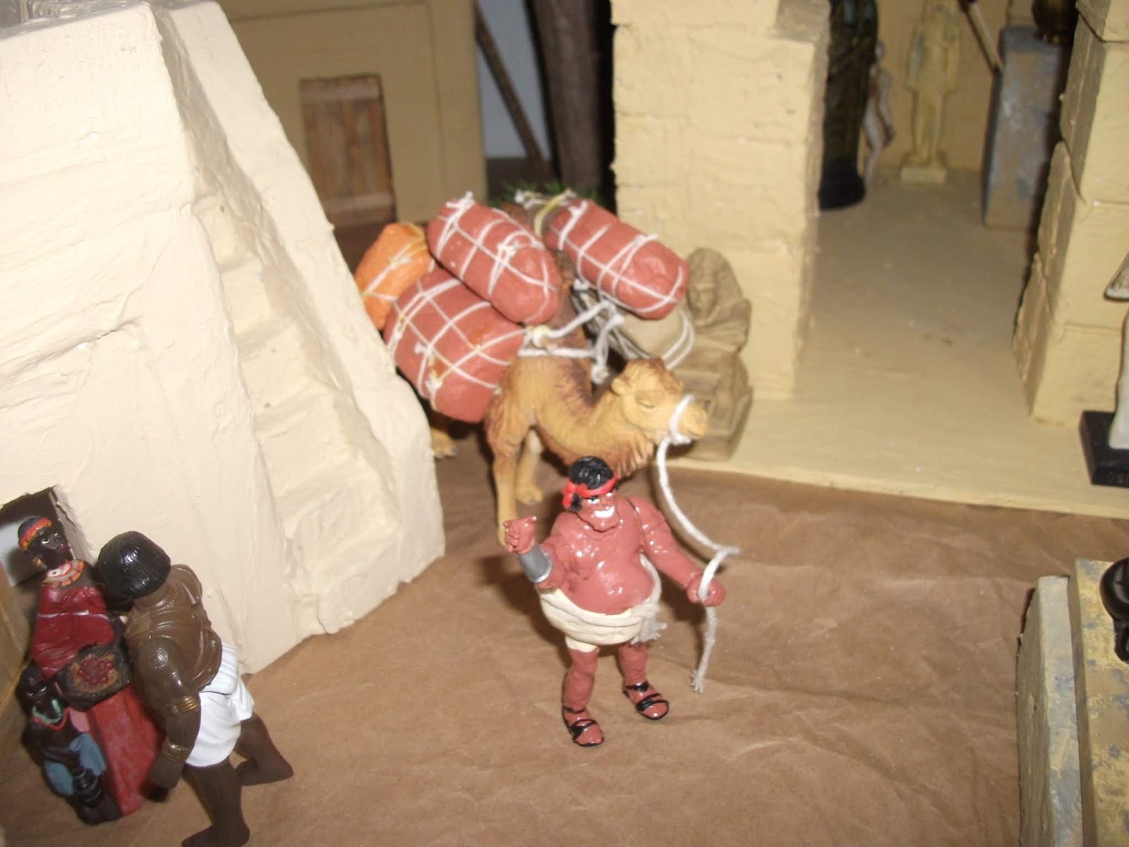 Here I added a merchant with a camel loaded with cargo. Aqui eu adicionei um comerciante com um camelo carregado com carga: